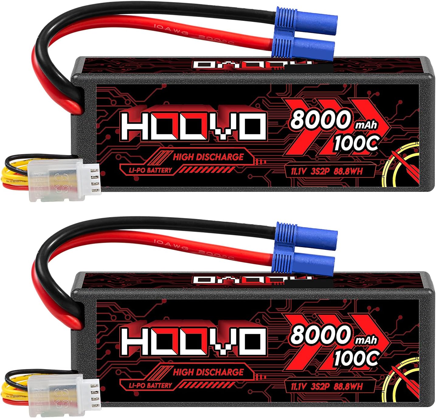 - 【What you get】-2 pack Hoovo 3s lipo battery ec5 plug 11.1V 8000mAh 100C hard case battery with the most advanced production technology and strict QC teams.We offer 30-days Money Back Guarantee, 12 months warranty for quality-related issues. Please let us know if you have any questions about our product, and we will reply you within 24 hours.