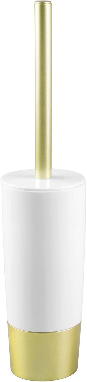 Affiliate reviews mDesign Decorative Compact Freestanding Plastic Toilet Bowl Brush and Holder for Bathroom Storage and Organization - Metal Handle/Base - Space Saving, Sturdy, Deep Cleaning - White/Gold Brass