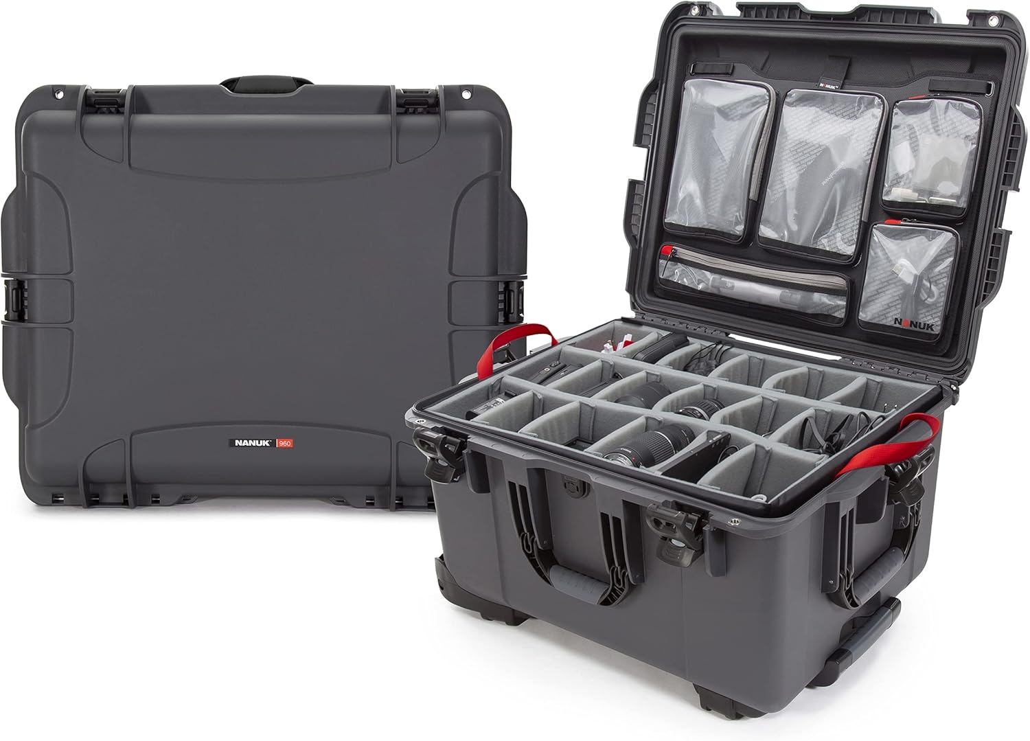 Exclusive Discount 70% Price Nanuk 960 Waterproof Hard Case with Lid Organizer and Padded Divider w/ Wheels - Graphite
