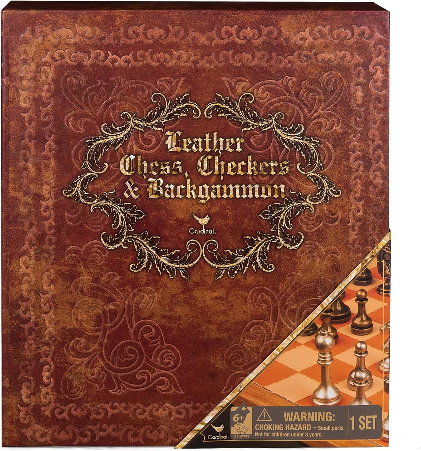 Black Friday Sale 2022 Cardinal Games Leather Chess, Checkers, & Backgammon - Deluxe 3-Game Set