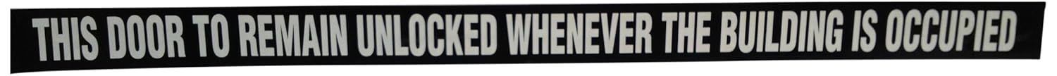 0 Response to "Don-Jo DD-6 Rectangle Door Decal, Legend"This Door to Remain Unlocked While Building is Occupied", 24" Width x 1-1/2" Height, White On Black (Pack of 10)"