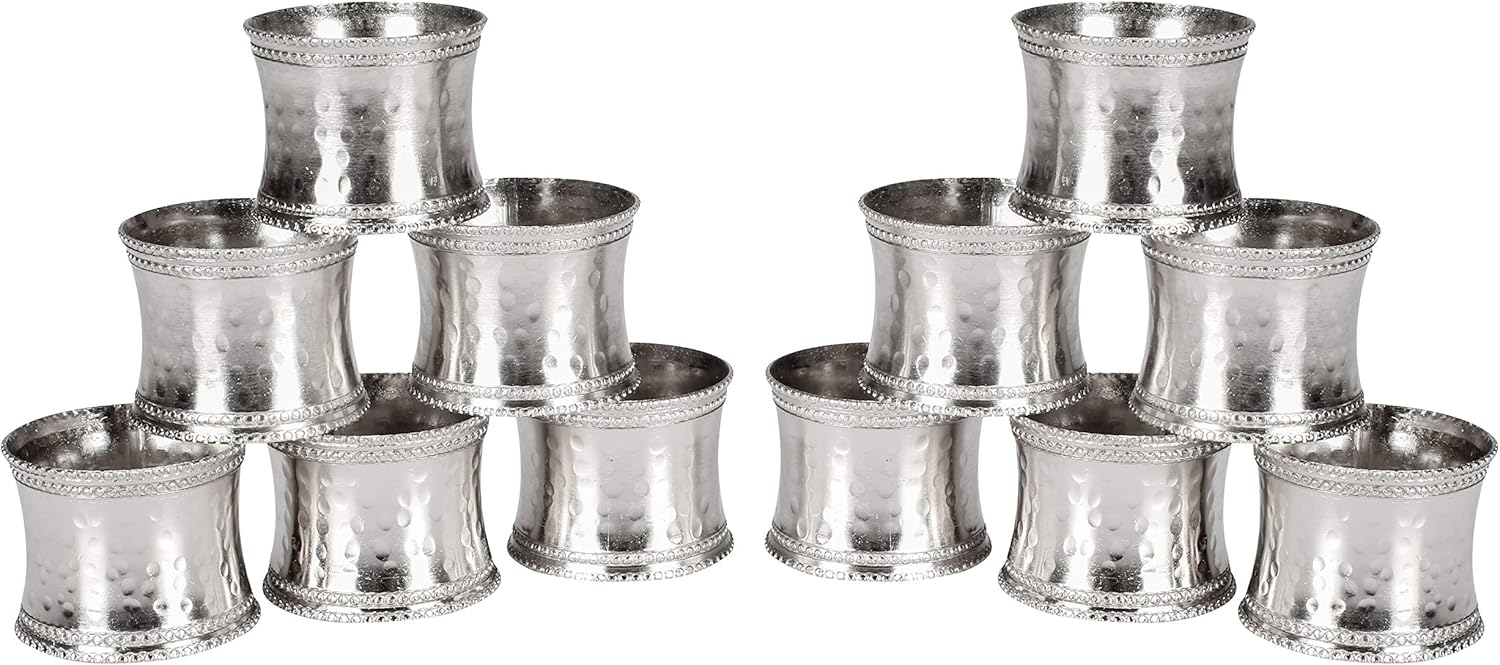 Alpha Living Home Metal Napkin Rings Set of 12, Beaded Napkin Holders, Hammered Napkin Rings Bulk for Party Decoration, Dinning Table, Everyday, Family Gatherings - A Great Tabletop Décor - Silver