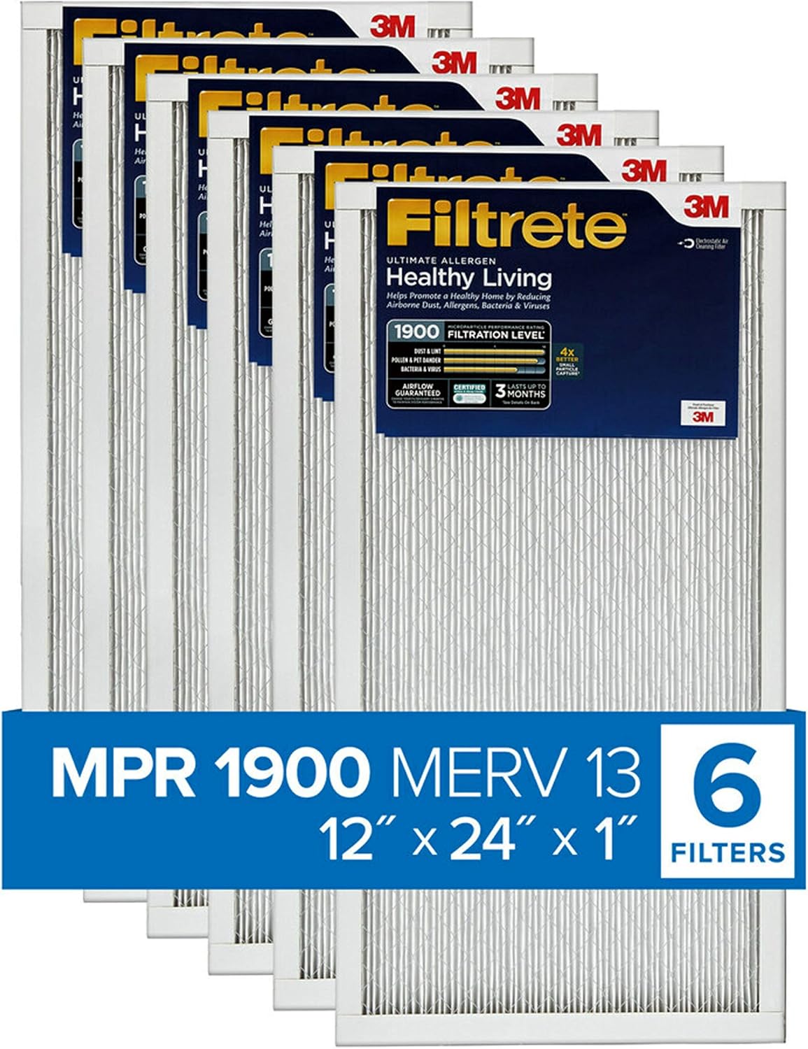 50% Off Discount Filtrete 12x24x1, AC Furnace Air Filter, MPR 1900, Healthy Living Ultimate Allergen, 6-Pack (exact dimensions 11.69 x 23.69 x 0.78)