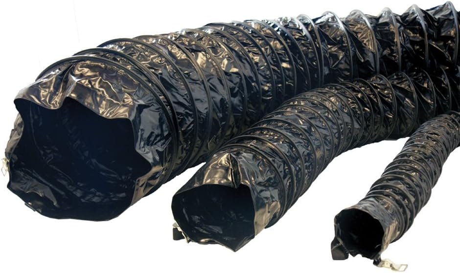 PVC vinyl coated polyester fabric hose reinforced with a spring steel wire helix & external wear strip. All hoses ends have a belted cuffed end for easy installation. Recommended for industrial air movement applications. All hoses ends have a belted cuffed end for easy installation. Aerospace, Air Duct Cleaning, A/C Ventilation, Blower Hose, Chiller, Cold Air Supply, Confined Space Ventilation, Dehumidification, Fans and Blowers, Flame Retardant, Flight Simulators, Function Tent HVAC, HEPA, Humidity Control, HVAC, Laser Engraving, Mining, Pet Training Hose, Rocket Support Duct, Safety Equipment, Smoke Ejectors, Utility Blowers, Ventilation, Wave Pool Blowers.
